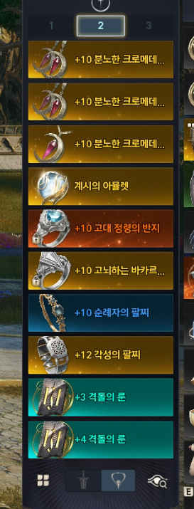 방어구&악세 -> 두쫀쿠돌아서 장비파밍, 유일한 영웅반지도 10강해주고 무의 요람에서 악세 파밍으로 일단 10강